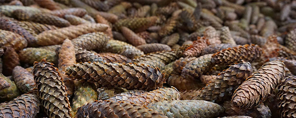 Högtryck på fröstationen - förra sommarens värme ger stora kottvolymer